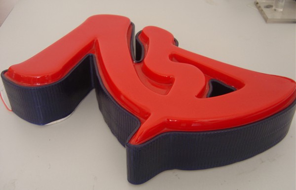 3、吸塑成型好后,就是用亞克力銑邊機(jī)進(jìn)行修邊等后續(xù)工序了。同時(shí),側(cè)面做好鐵皮烤漆邊,鋸出字內(nèi)徑同樣大小的PVC板做底板,粘上LED字,然后合起來(lái),基本上就成了。